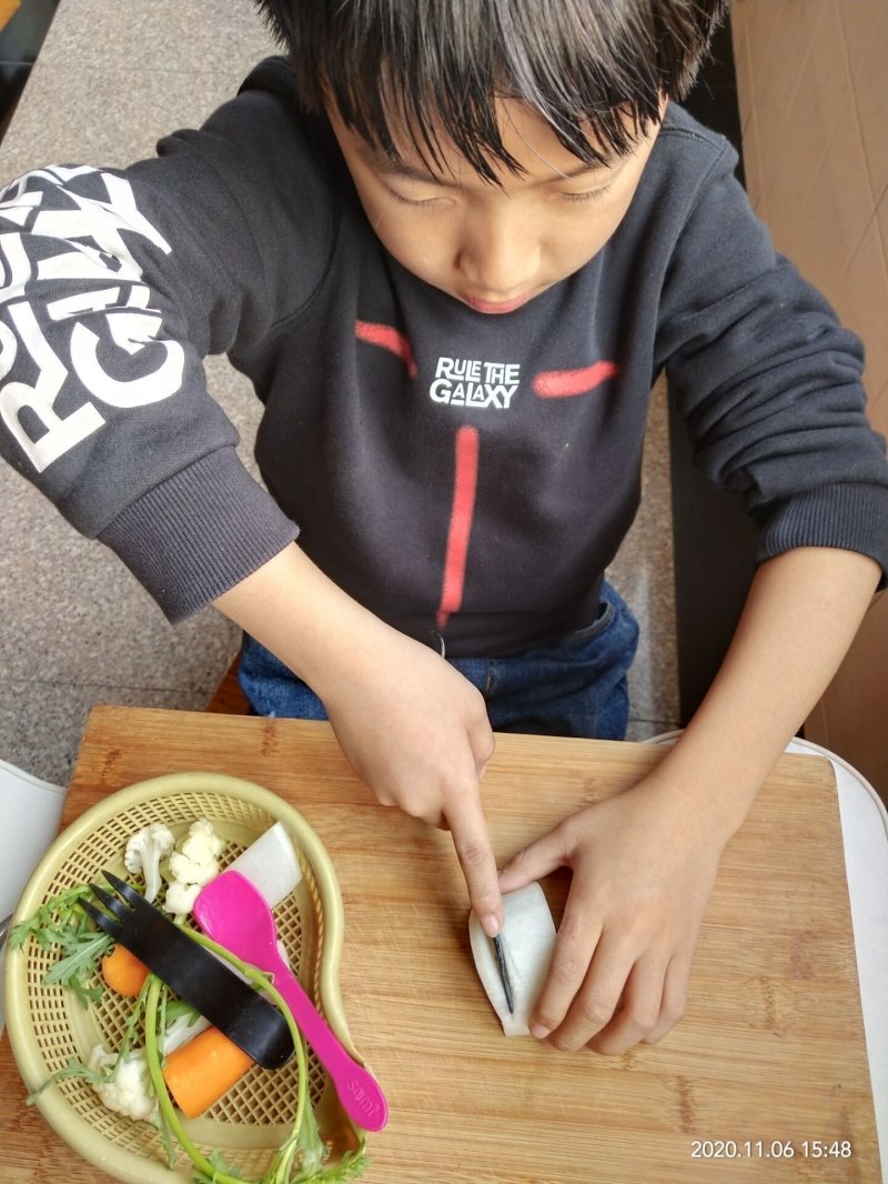 3小初衔接:五六年级的同学们,在朝阳中学部一起利用自己获得的“奖品”,包饺子,做菜,还邀请的初一的哥哥姐姐们来分享。