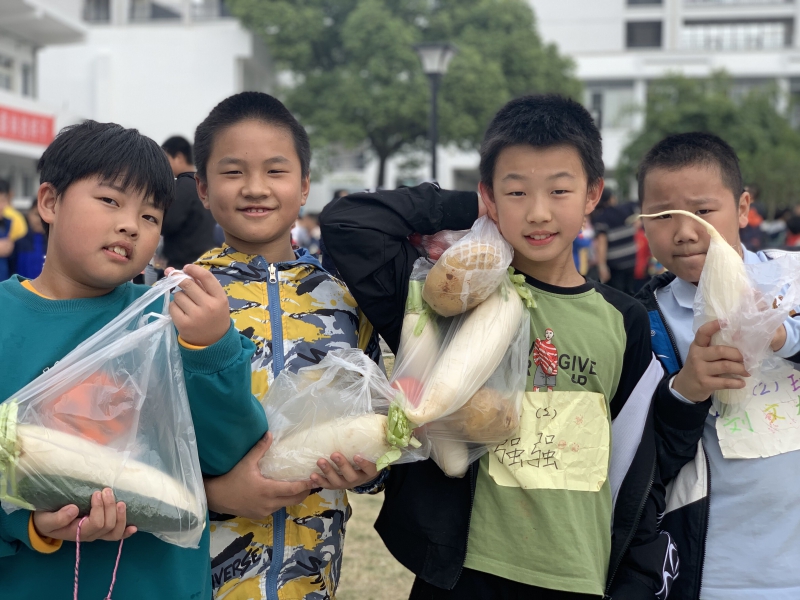 1一起来“抢蔬菜”:在11月份的趣味运动会上,各个项目的奖品就是蔬菜和水果,通过活动我们体验到食物的来之不易,要珍惜粮食。更有趣的是,每个班级通过团体比赛,获得了抢蔬菜资格,看!我们抢得多卖力!(图 )