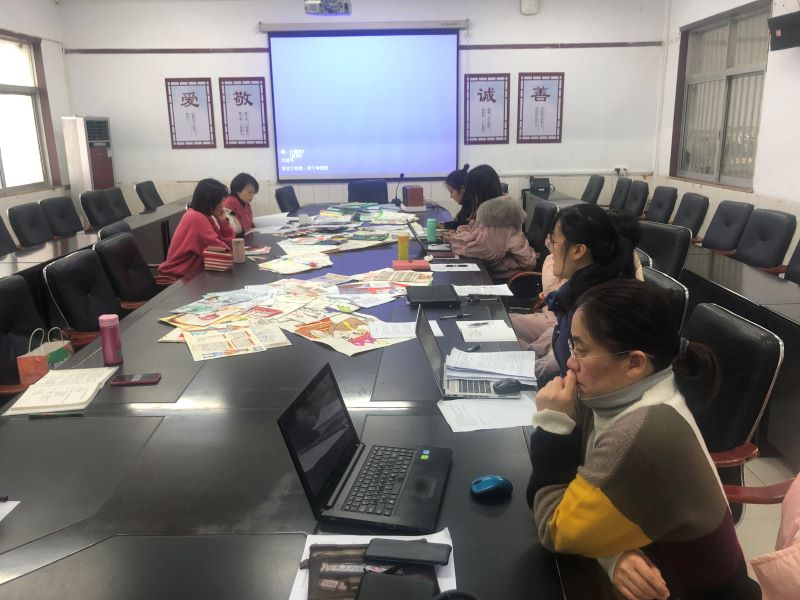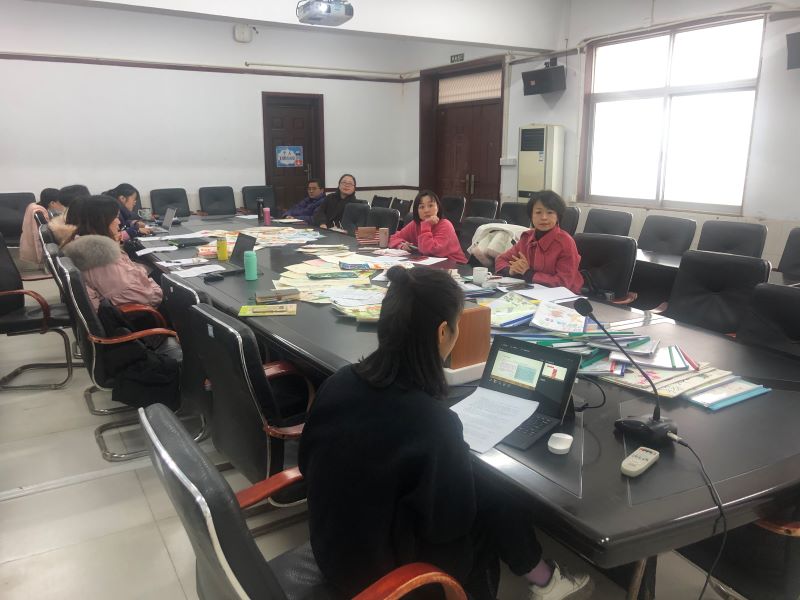 调研指导活动由宋妍老师主持,课题负责人和全体主研全程参与了本次调研活动。会上首先由蒋婷飞老师汇报了整本书阅读的研究背景、研究的可行性、必要性,在社会中和在我校的研究实践情况、研究困惑等等。