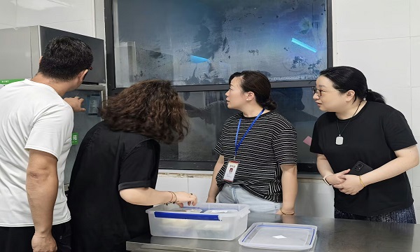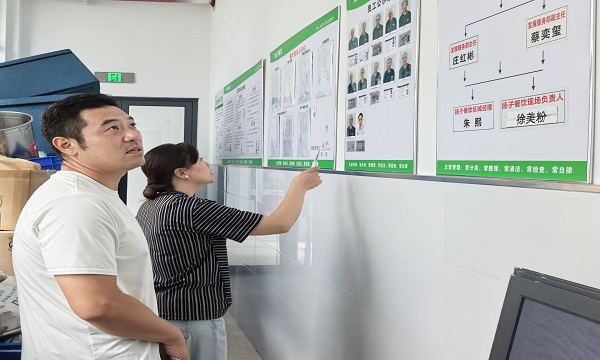 接着,陶校长通过走进食堂详细考察了食品安全第一责任人制度、膳食管理委员会运作、陪餐制度、进货查验、食品留样、清洗消毒等核心制度的落实情况。陶校长认为我校“校园餐”制度健全、落实到位,有效保障了师生饮食安全与健康。